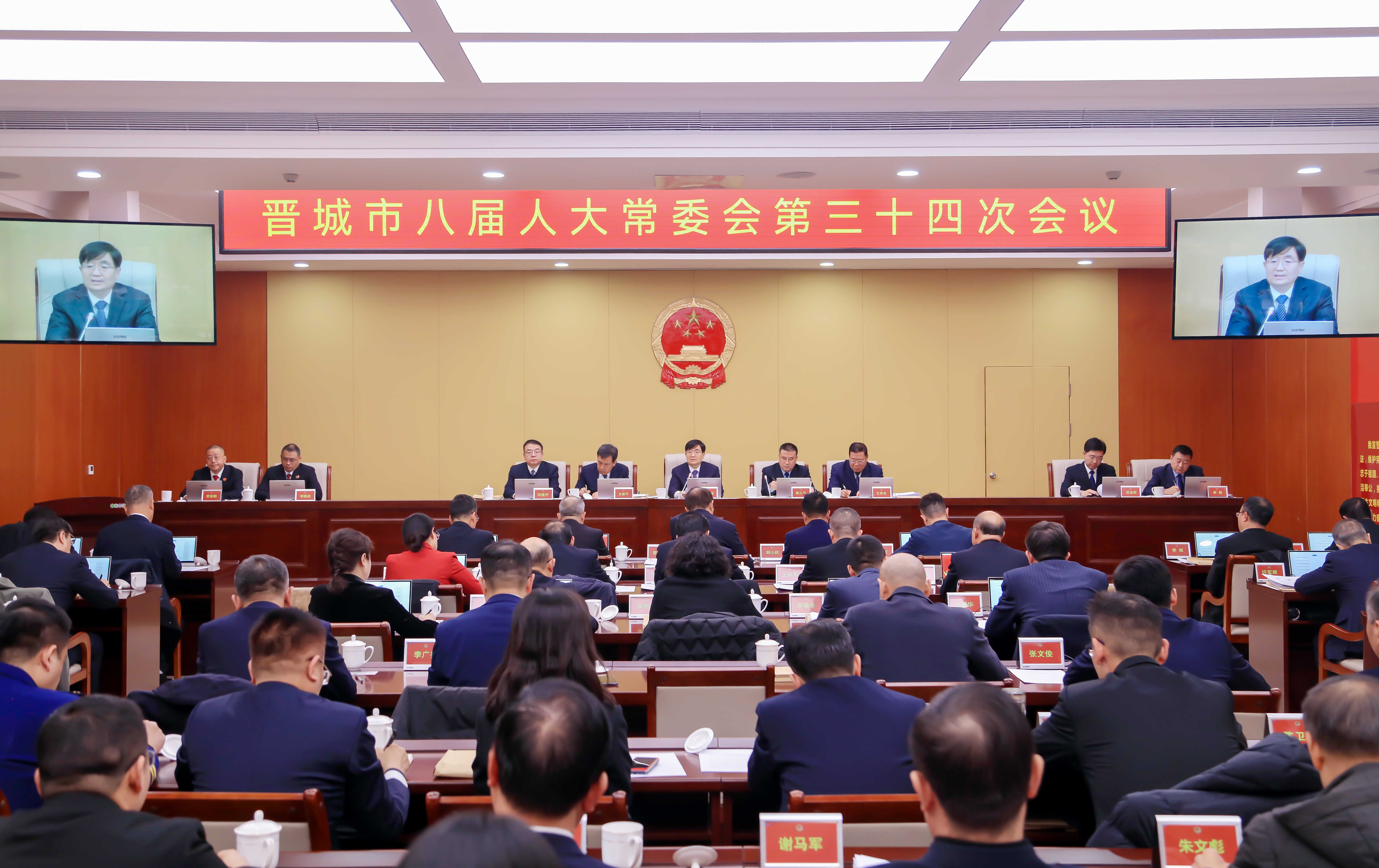 会议审议了《晋城市电动汽车充电基础设施管理条例(草案修改稿)》;听取、审议并表决通过了市人大常委会关于召开晋城市第八届人民代表大会第六次会议的决定、市人大常委会代表资格审查委员会关于个别代表的代表资格的报告、市人民政府关于2024年度市本级预算执行和其他财政收支审计查出问题整改情况的报告、市人民政府关于市八届人大五次会议代表建议办理情况的报告、市中级人民法院关于市八届人大五次会议代表建议办理情况的报告;听取和审议了市人民政府关于民生实事项目完成情况的报告并进行了满意度测评;听取和审议了市人民政府关于2025年晋城市市本级财政预算调整方案(草案)的报告、市人大财经委关于2025年晋城市市本级财政预算调整方案(草案)的审查结果报告,表决通过了市人大常委会关于批准2025年晋城市市本级财政预算调整方案的决议;审议并表决通过了市人民政府关于《晋城市人大常委会关于2025年上半年全市国民经济和社会发展计划执行情况报告的审议意见》研究处理情况的报告(书面)、关于《晋城市人大常委会关于2024年全市及市本级政府债务情况报告的审议意见》研究处理情况的报告(书面)、关于《晋城市人大常委会关于2024年度全市国有资产管理情况报告的审议意见》研究处理情况的报告(书面),市发展和改革委员会、市人民政府外事办公室、市市场监督管理局、市信访局、市数据局主要负责人述职报告(书面),人事任免案。